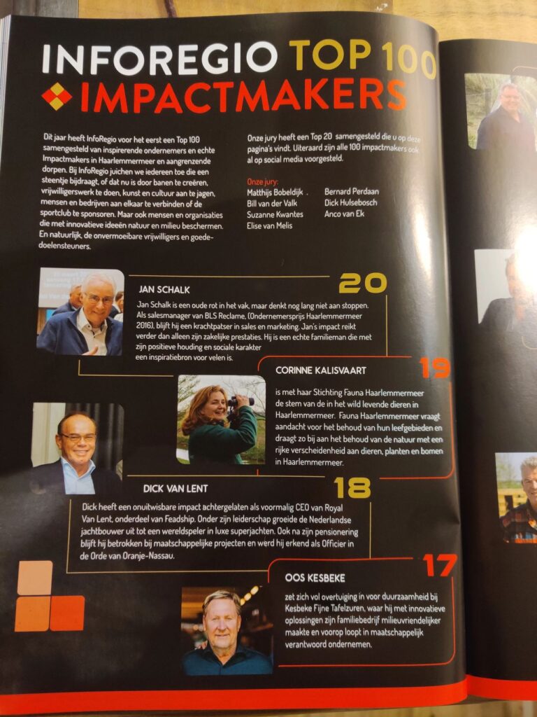 Dit jaar heeft Inforegio de top 100 samengesteld van inspirerende ondernemers en echte impactmakets in Haarlemmermeer.