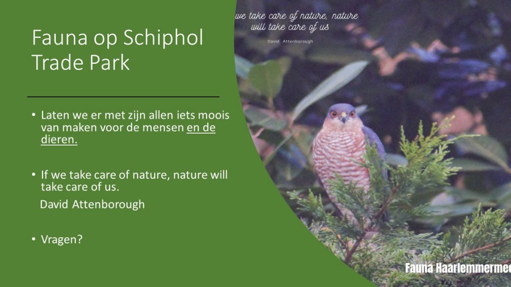 Presentatie over de Wilde dieren op Schiphol Trade Park 12 juli 2021